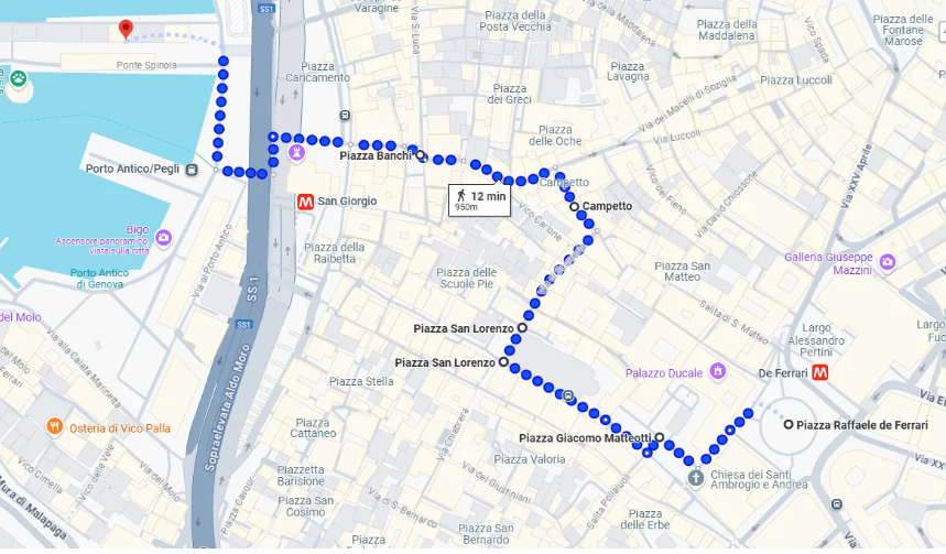 Il percorso ti porta attraverso alcune delle zone più belle e caratteristiche di Genova.