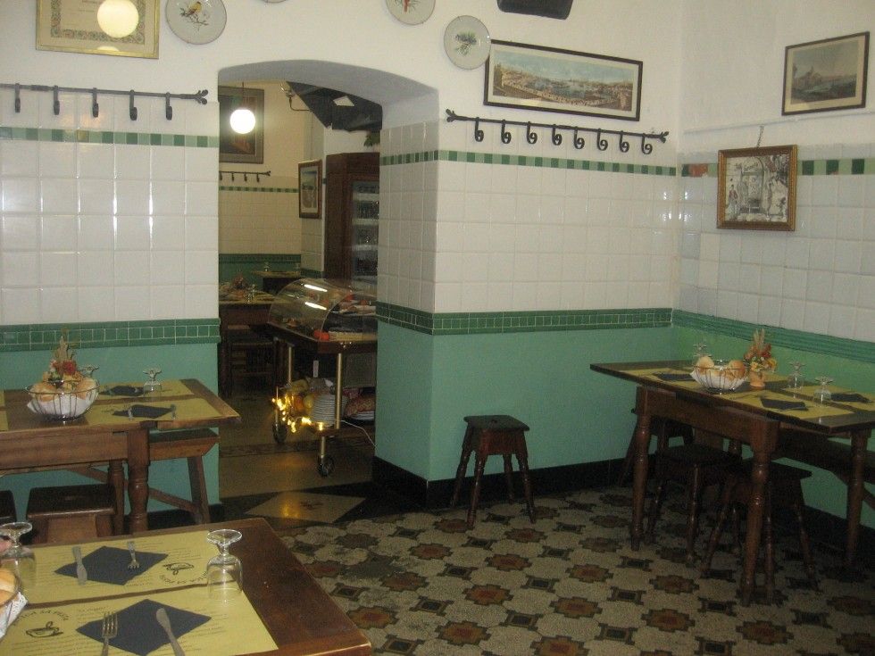 Nasce così, a inizi Ottocento, una delle osterie e trattorie più affascinanti e “saporite” della città, dove si cucina la farinata, sottile e dorata, che nel XV secolo in latino era detta “scripilita” per il suo tipico scoppiettare nel “testo” – la teglia di rame stagnato ancora in uso – le torte di verdura preparate secondo tradizione con la prescinsêua – cagliata di latte fresco – e cotte lentamente nel forno a legna, ed altre specialità come le acciughe ripiene e i polpettoni di verdura.